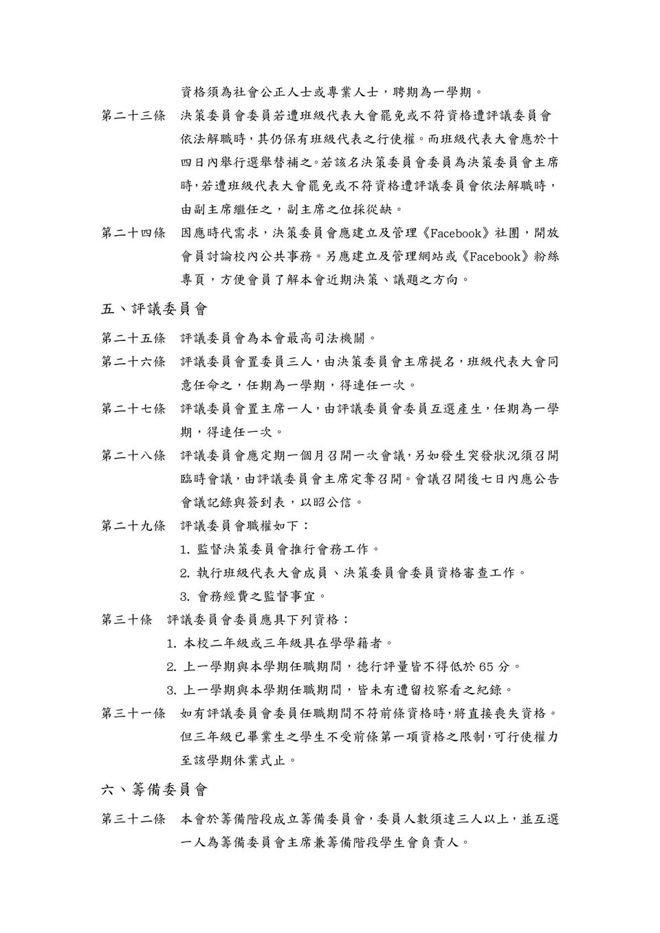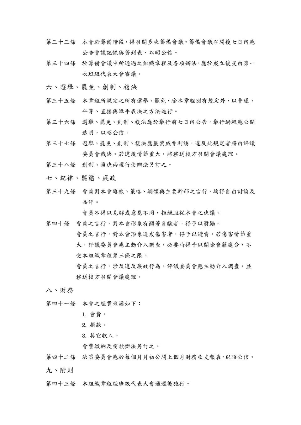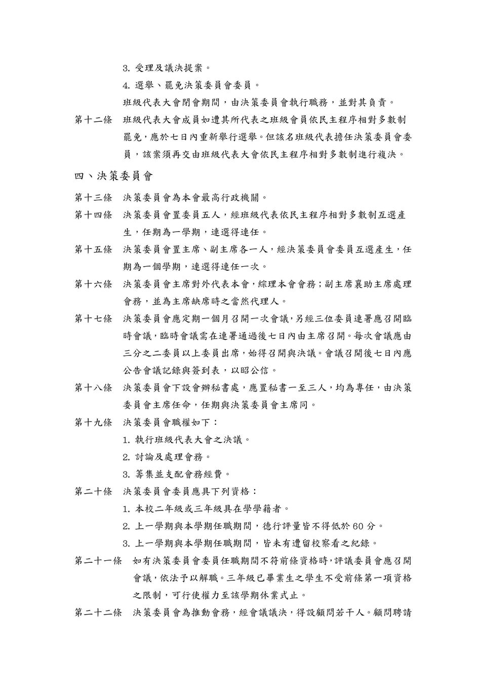 以下為本會籌備委員會現任主席周子愉提出《華岡藝術學校學生會組織章程》草案: